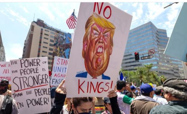 خرج الرئيس الأمريكي دونالد ترامب بعد مُشاهدة احتجاجات “يوم لا للملوك” التي انتشرت حول العالم ضده، بتصريحات هي الأولى من نوعها منذ انطلاق المظاهرات، نافياً خلالها كونه ملكاً، ومؤكداً على أنه يعمل بجهدٍ كبير من أجل جعل الولايات المتحدة بلداً عظيماً.