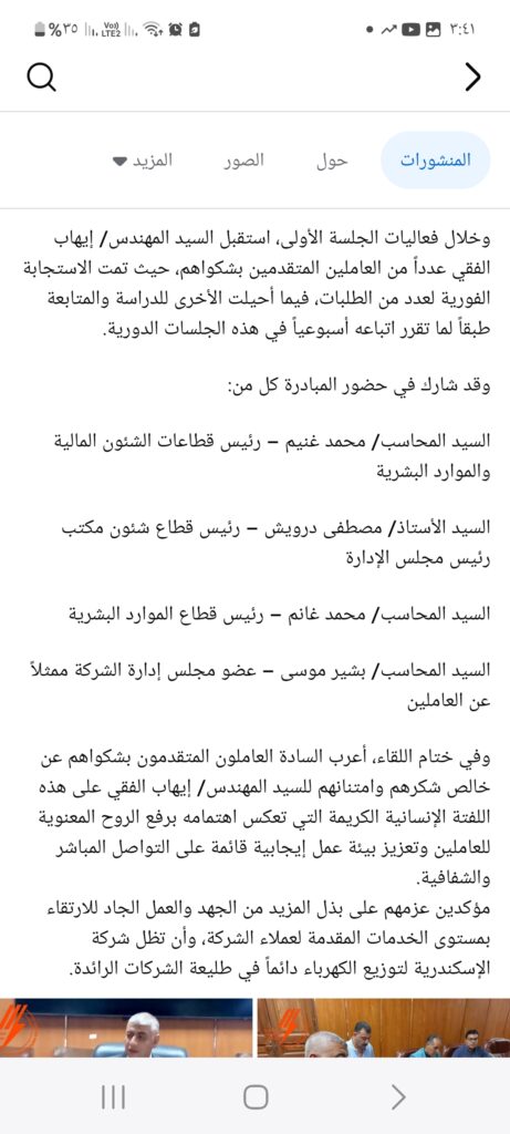 إن قطاع الكهرباء هو قاطرة التنمية ، ونجاحه يبدأ من احترام العاملين فيه . ويجب أن يكون شعارنا: “حقوق العمال محفوظة بقوة القانون ، لا بجبر الخواطر!”