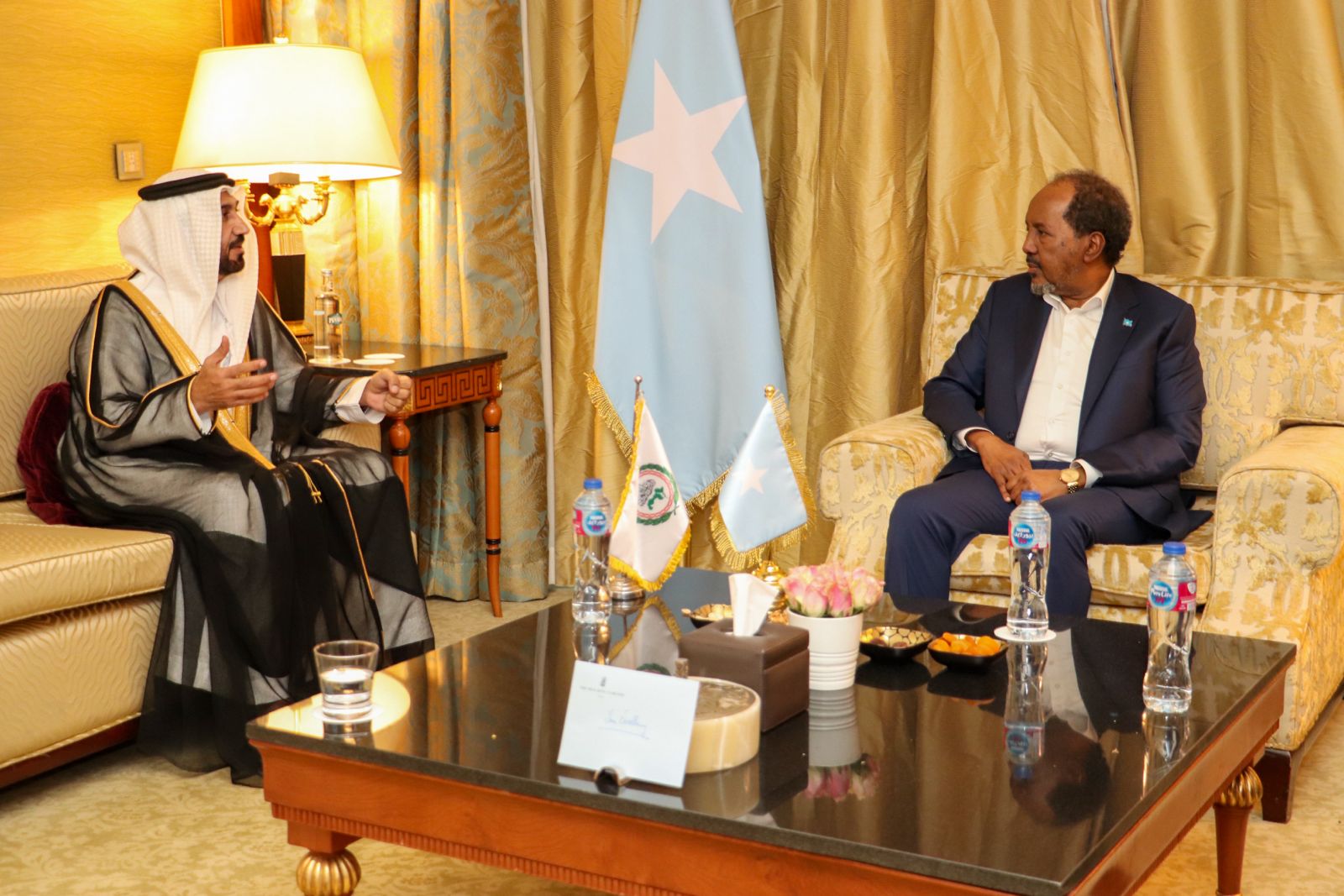 وخلال اللقاء، أشاد اليماحى بجهود الرئيس حسن شيخ من أجل تحقيق التنمية الشاملة فى الصومال، مشيدًا، بمشروع “مقديشو الجديدة” الذى أطلقه الرئيس الصومالى فى ديسمبر الماضى، مؤكدًا، أنه مشروعًا وطنيًا متكاملًا يهدف إلى تعزيز مكانة العاصمة كمركز تجارى إقليمى على الصعيدين العربى والإقليمى.