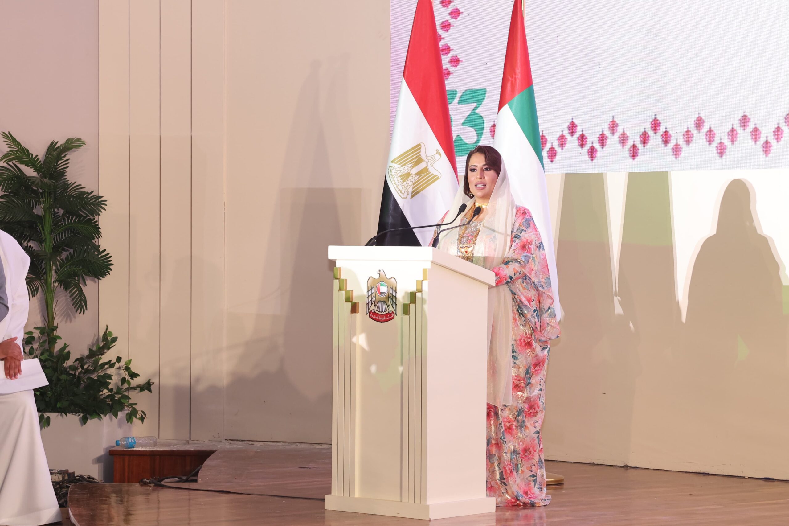 جاء ذلك خلال كلمتها، مساء الإثنين، فى حفل استقبال نظمته السفارة بمناسبة عيد الاتحاد الـ 53، وذلك بأحد فنادق العاصمة الإدارية الجديدة، بمشاركة نائب رئيس الوزراء وزير الصحة والسكان د. خالد عبد الغفار، ووزير الدولة الإماراتى خليفة شاهين.