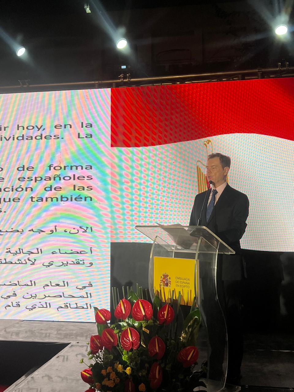 وقال سفير إسبانيا بالقاهرة ألبارو إيرانثو خلال كلمته فى الحفل: نحن على قناعة فعلية بالأهمية الاستراتيجية لبناء شراكة قوية مع جيراننا المقربين حول بحرنا المشترك، ولهذا السبب نحن ملتزمون بالاتحاد من أجل المتوسط، ويسعدنا أن نستفيد من تصميم مصر على تطوير علاقاتها مع الاتحاد الأوروبى بشكل كامل.