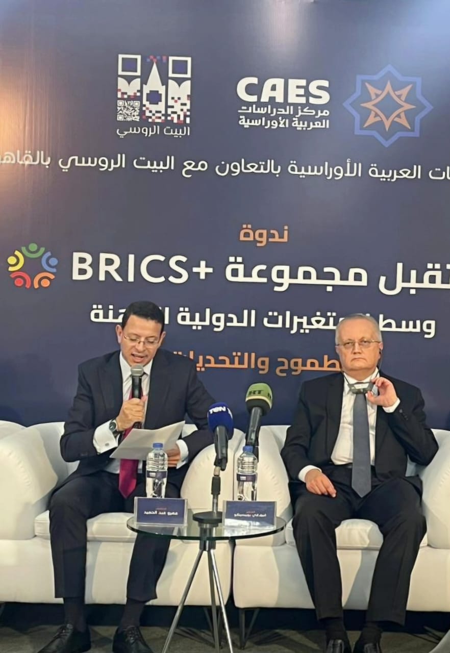 عقدت السفارة الروسية بالقاهرة، بالتعاون مع مركز الدراسات العربية الأوراسية، ندوة بعنوان “مستقبل مجموعة البريكس وسط المتغيرات الدولية الراهنة”.