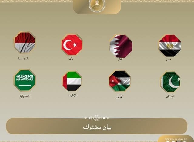 أدان وزراء خارجية كل من جمهورية مصر العربية، المملكة الأردنية الهاشمية، الإمارات العربية المتحدة، جمهورية إندونيسيا، جمهورية باكستان الإسلامية، جمهورية تركيا، المملكة العربية السعودية، ودولة قطر، بأشدّ العبارات القرارات والإجراءات الإسرائيلية غير القانونية الهادفة إلى فرض السيادة الإسرائيلية غير الشرعية، وترسيخ الاستيطان، وفرض واقع قانوني وإداري جديد في الضفة الغربية المحتلة، بما يسرّع محاولات ضمّها غير القانوني وتهجير الشعب الفلسطيني. وأكّدوا مجددًّا أنّ لا سيادة لإسرائيل على الأرض الفلسطينية المحتلة.