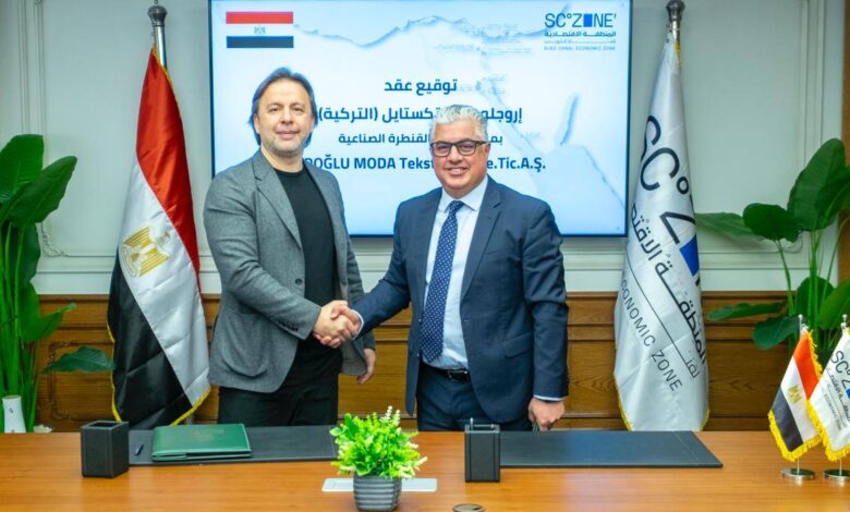 وقع وليد جمال الدين، رئيس الهيئة العامة للمنطقة الاقتصادية لقناة السويس، بمقر الهيئة بالعاصمة الجديدة، عقد مشروع شركة أوروجلو مودا تكستايل “Eroglu ModaTekstil San Ve. Tic S.A.التركية، المتخصصة في صناعة الملابس الجاهزة، لإقامة مصنع جديد بمنطقة القنطرة غرب الصناعية على مساحة 5,700 متر مربع، باستثمار يصل إلى 5.6 مليون دولار أمريكي (بما يعادل 265 مليون جنيه مصري)، بتمويل ذاتي بالكامل، ويستهدف المشروع إنتاج الملابس الجاهزة ومنتجات الجينز والأقمشة المتنوعة بطاقة إنتاجية سنوية تصل إلى مليون قطعة، مع تصدير 95% من الإنتاج للأسواق العالمية، و5% للسوق المحلي، ومن المتوقع أن يوفر نحو 700 فرصة عمل مباشرة عند التشغيل الكامل.