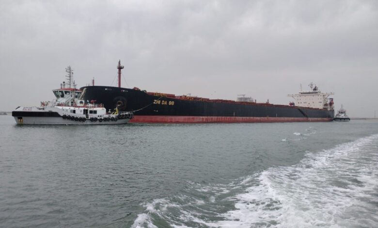 ويبلغ طول السفينة ( 289 مترًا )، فيما يصل غاطسها إلى( 15,5 مترًا )، وهو ما يعكس الجاهزية الفنية العالية للميناء وقدرته على استقبال السفن ذات الحمولات القياسية، في ضوء أعمال التطوير المستمرة التي تشهدها البنية التحتية للميناء.