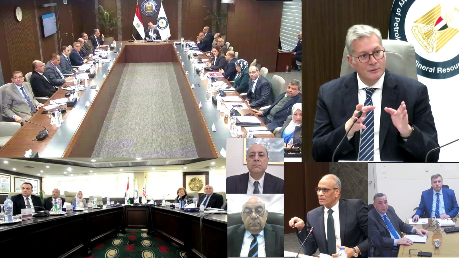 حضر الإجتماع المهندس صلاح عبد الكريم الرئيس التنفيذى لهيئة البترول والمهندس يس محمد العضو المنتدب التنفيذي للشركة المصرية القابضة للغازات الطبيعية والجيولوجى علاء البطل وكيل أول الوزارة والمشرف على البيئة والسلامة وكفاءة الطاقة والمناخ والمهندس إيهاب رجائى وكيل أول الوزارة للإنتاج والدكتور سمير رسلان وكيل الوزارة للاتفاقيات والاستكشاف والمهندس معتز عاطف وكيل الوزارة لشئون مكتب الوزير والمكتب الفنى والمتحدث الرسمى والمهندس خالد البدري وكيل الوزارة للمشروعات والأستاذ أحمد راندى رئيس الإدارة المركزية للاتصالات بالوزارة والمحاسب أشرف قطب وكيل الوزارة للشئون المالية والأستاذ يحيى الروبى مستشار الوزير للشئون القانونية والدكتور محمد الباجورى مساعد رئيس الإدارة المركزية للشئون القانونية بالوزارة والمشرف عليها ونواب ومساعدى رئيس الشركة القابضة للبتروكيماويات والمحاسبة منى ثابت وكيل الوزارة بالجهاز المركزى للمحاسبات والمحاسب عباس صابر رئيس نقابة العاملين بالبترول.